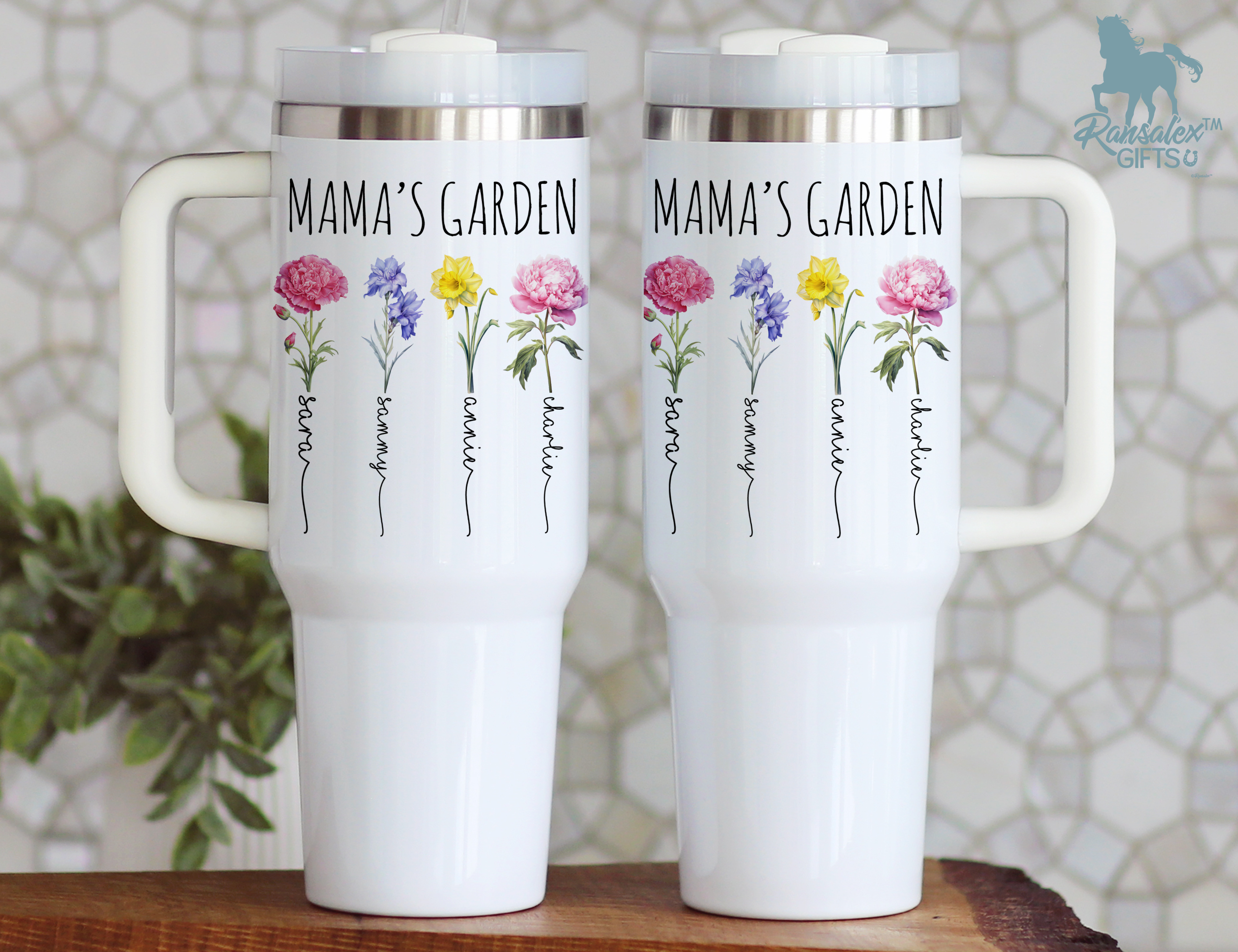 Celebrate the love and growth Mama nurtures with this personalized Mama’s Garden tumbler. Featuring the phrase “Mama’s Garden” above a bouquet of birth month flowers, and her children’s names below, this floral design turns a practical gift into a sentimental treasure. Perfect for Mother’s Day, birthdays, or just because she deserves it.