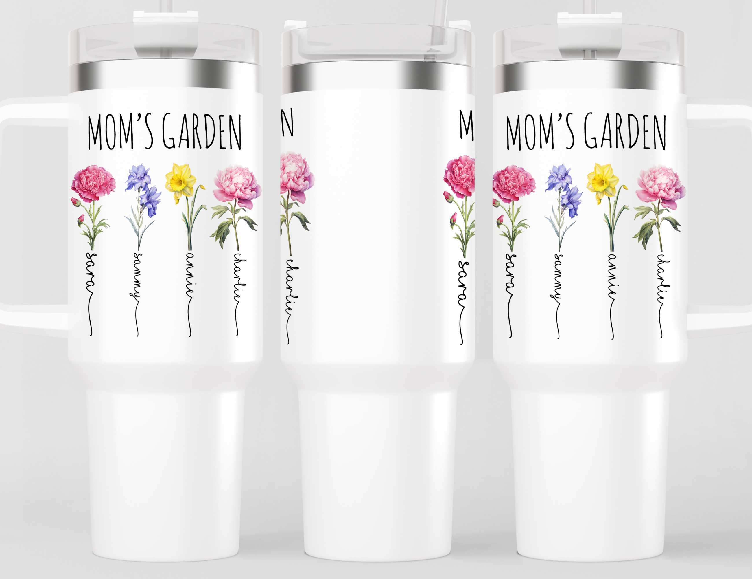 Show Mom just how deeply she's loved with this beautifully personalized Mom’s Garden mug. Featuring birth month flowers and each child’s name below, along with the sweet phrase “Mom’s Garden” above, this design is a heartfelt tribute to the love she cultivates every day.